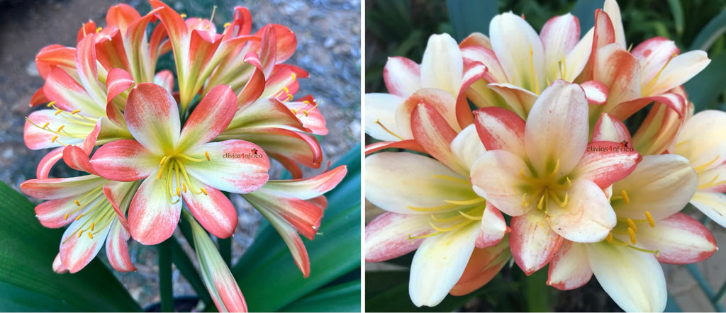 Two magnificent clivias with similar unique colour patterns. Hoping for improved beauties.