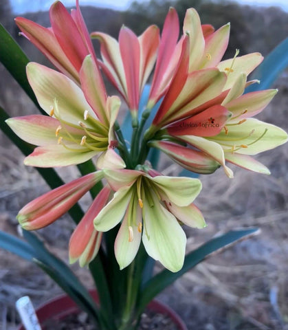 Gone with the Wind is a multi clivia specie interspec: Gardenii, Miniata, Robusta and Nobilis - crossed with Stargreen Red Roman, with its deep dark versi, star shaped flowers and green throat, what a breathtaking combination, just when we thought it couldn’t get any better!
