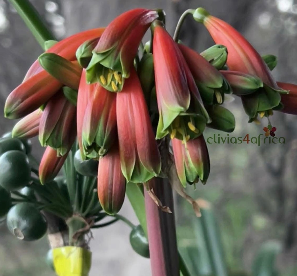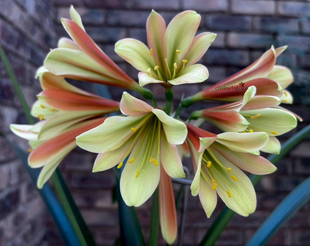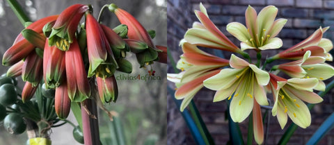 Genesis carries very dark ruby-red flowers highlighted by glowing emerald-green tips, crossed with Stargreen-X, with its dark bronze/brick versi, showing off pale bright insides and a green throat, this pairing may result in a dramatic, richly multicoloured bloom.