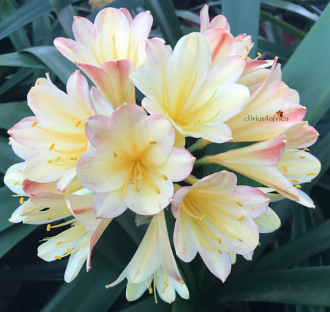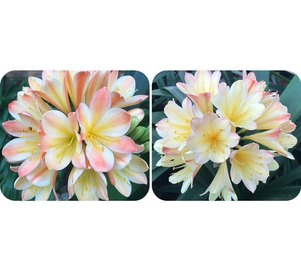 Two lovely clivias with similar colour patterns! Mysterious- unknown breeding.